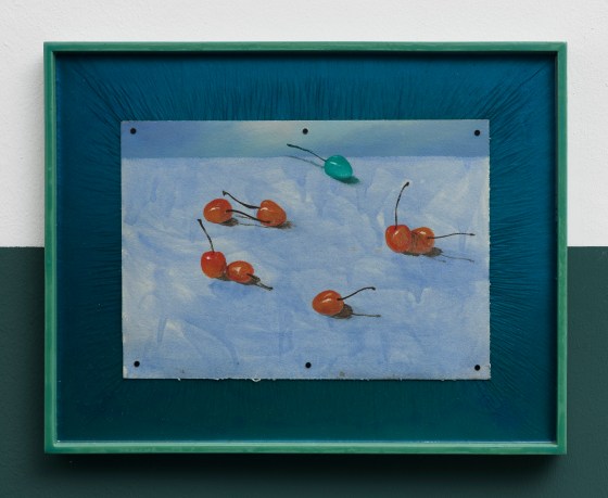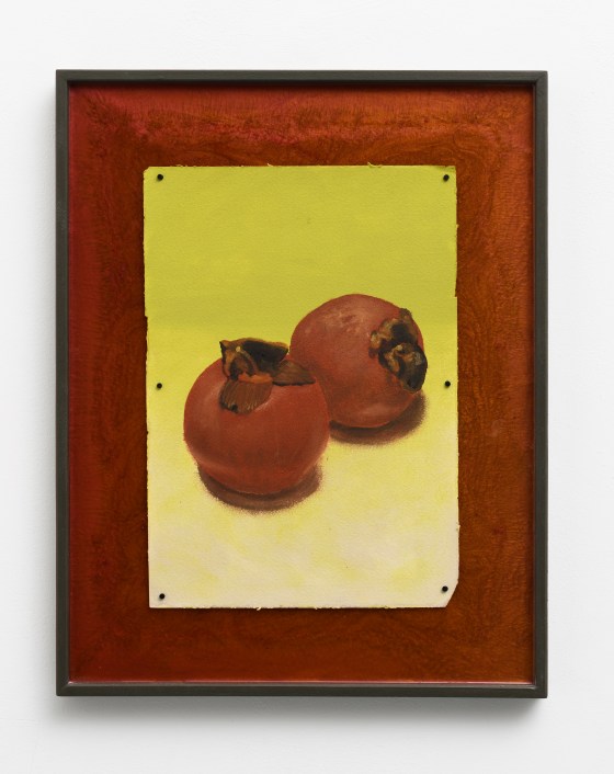 “cachi in compagnia”, 2025, olio su carta, cornice in resina, 38 x 46 cm