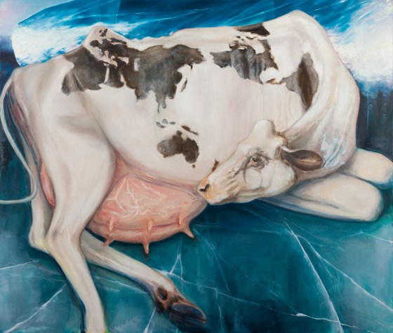 “Vacca sul ghiaccio che scotta”, 2022, Olio su tela, cm 170 x 200 cm.