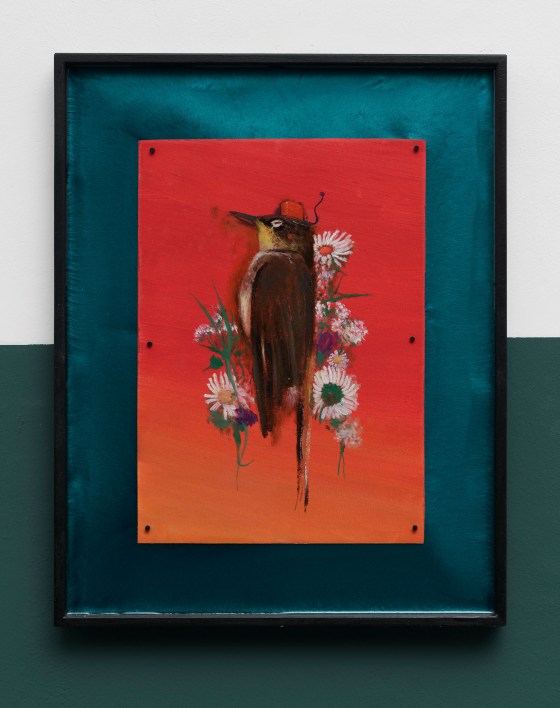 “fiori e figli secchi”, 2025, olio su carta, cornice in resina, 38 x 46 cm