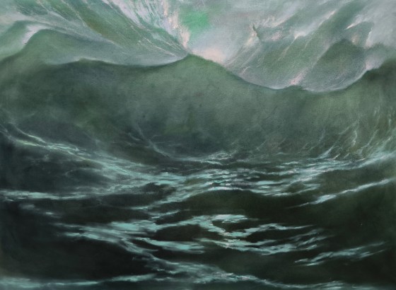 “Great wave”, 2025, olio su tela, 128 x 175 cm.