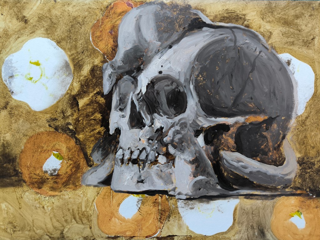 In queste opere il teschio — reale o finto, oggetto o simbolo — diventa un interlocutore diretto. Le figure scheletriche, talvolta nascoste, talvolta dichiarate, invitano a guardare la morte senza timore, a giocarci, ad amarla, forse a cercarne un senso, ammesso che ne abbia uno.