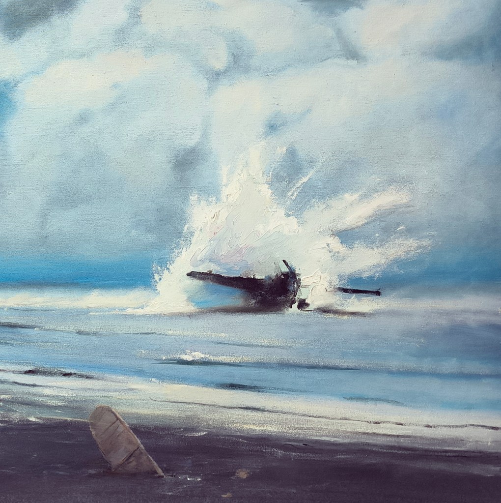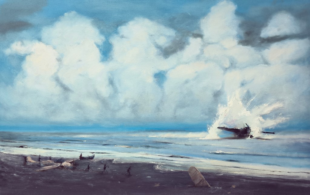 “Quando cadranno tutti gli aerei da guerra, allora si sarò felice (When all military aircraft fall, then i will be happy)”, 2025, olio su tela. 90 x 145 cm. thomasbraida24 febbraio 202626 febbraio 20262025, Pittura Navigazione articoli Precedente Condividi: Condividi su X (Si apre in una nuova finestra) X Condividi su Facebook (Si apre in una nuova finestra) Facebook Mi piace Caricamento... Correlati