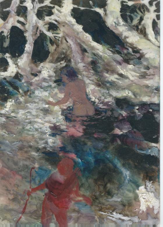 “The discoveris of Actaeon”, 2018, olio su carta, A4
