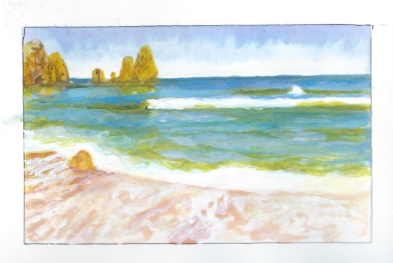 “Praia do Camilo”, 2021, acquerello ed olio su carta, 10 x 15 cm, quattro versioni