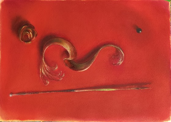 “capuccetto rosso”, 2018, olio su cartoncino, A4, due versioni