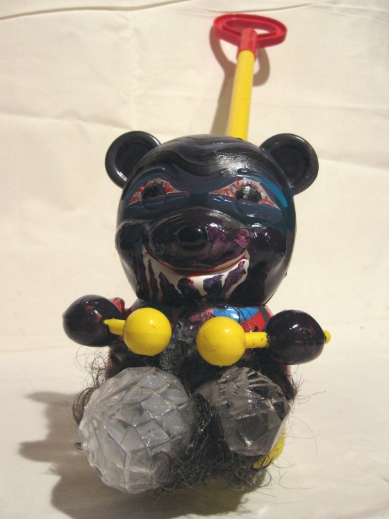 orsetto giocattolo con biberon e lebbra