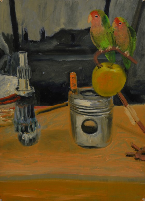 “Papaya the terror of sardines”, 2024, olio su tavola, 21 x 26 cm.