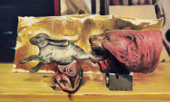 “The Tiger and the Rabbit”, 2024, olio su tela, 30 x 50 cm.