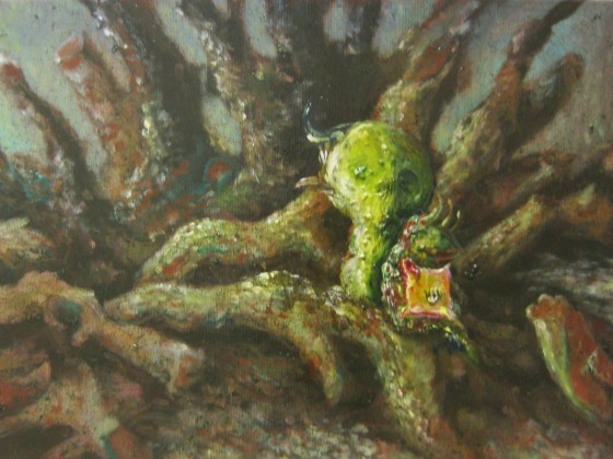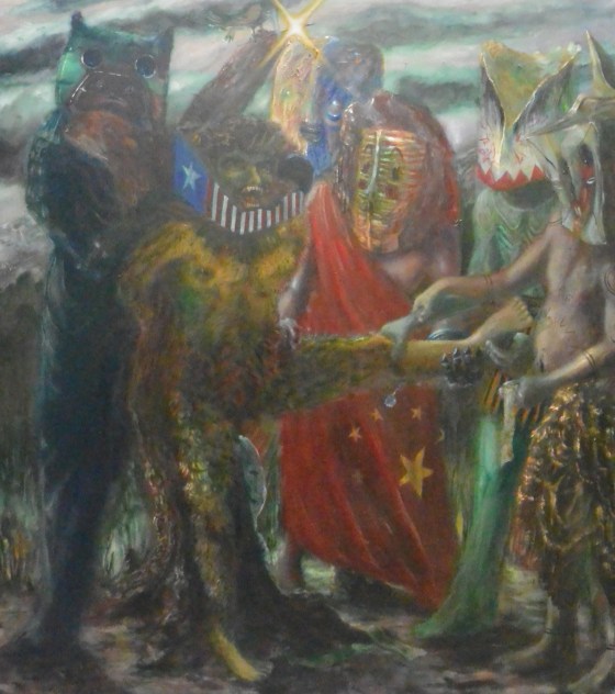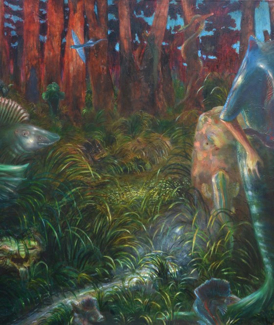 pesci fuor d’aqua (sono evoluzionista) -2014-olio su tela- 213×187 cm